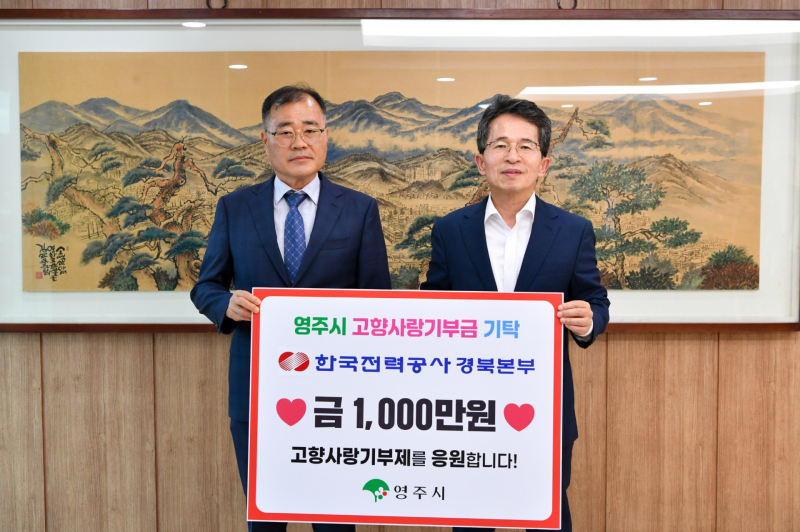 한국전력공사 경북본부가 영주시에 고향사랑기부금 1000만원을 전달했다.