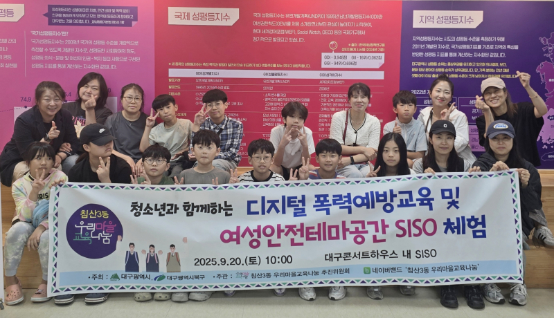 이번 프로그램은 침산3동 우리마을교육나눔 추진위원회와 청소년 활동가들이 참여했으며, 참가자들은 대구콘서트하우스 1층에 마련된 여성안전테마공간 SISO에서 디지털 성범죄 예방과 대응 방법을 배우고 실제 상황 기반 프로그램을 체험했다.