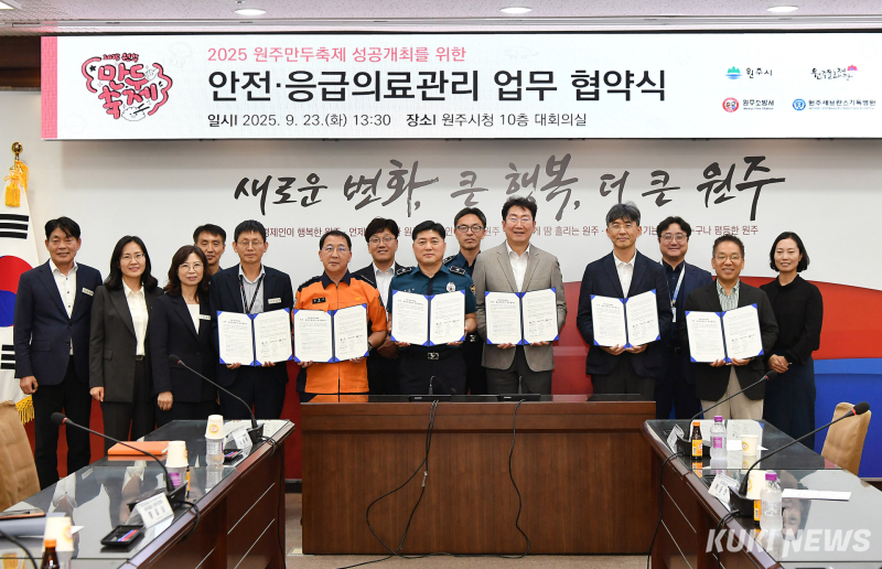 원주시는 ‘2025 원주만두축제’ 안전개최를 위해 원주경찰서, 원주소방서, 원주세브란스기독병원, 성지병원과 안전·응급의료관리 업무협약을 체결했다고 24일 밝혔다.