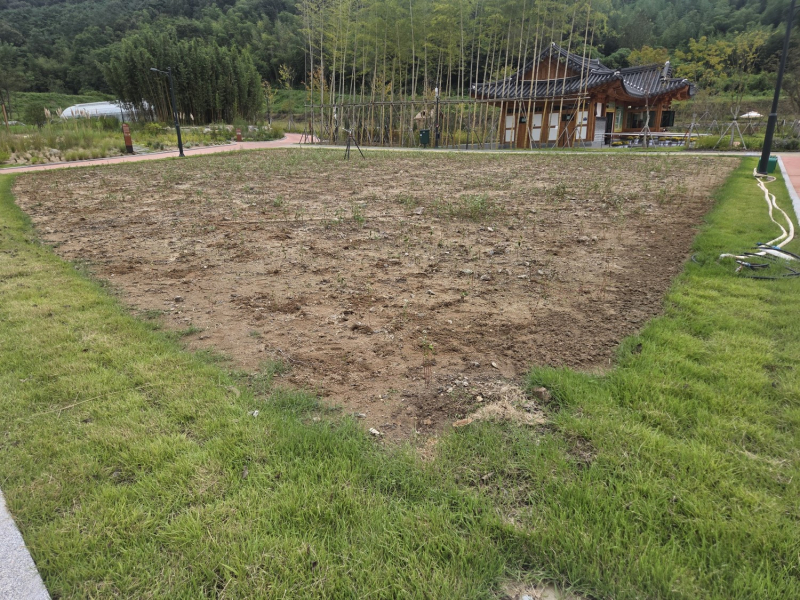 그러나 기대감은 오래가지 않았다. 본관 내부에는 안내 자료나 체험 프로그램 정보가 거의 보이지 않았고, 방문객이 어떤 방식으로 문화원을 즐길 수 있는지 알려주는 가이드도 찾기 어려웠다. 국립정원문화원 내 정원 전시 공간. 잡풀이 듬성듬성 자라 황량한 대지를 메우고 있다. /김재환 기자관람로로 들어서자 실망은 더 커졌다. 푸릇한 수목은 눈에 거의 띄지 않았고 대신 잡풀이 듬성듬성 자라 황량한 대지를 메우고 있었다. 정원이라기보다는 '덜 마무리된 공사판'에 가까운 풍경이었다.