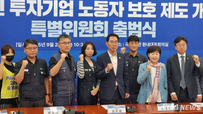 민주당은 25일 서울 여의도 국회에서 ‘외국인 투자기업 노동자 보호 제도 개선 특별위원회’ 출범식을 열고 외투기업의 고용승계와 사회적 책임 강화 방안을 논의했다. 특위 위원장에는 김주영 민주당 의원, 간사에는 이용우 민주당 의원이 각각 선임됐다.