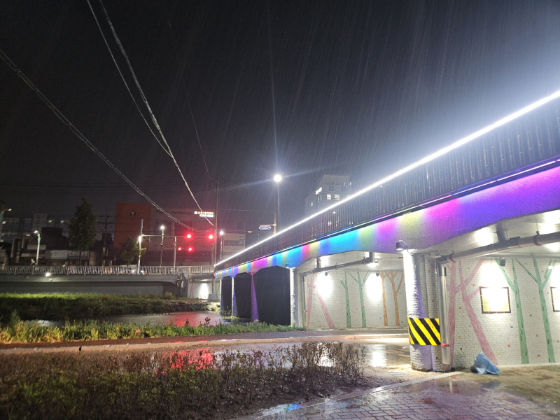 시는 교량 하부 4개소 벽면에 천성산 일출 등 산야에 아름다움을 표현한 타일을 설치했다. 주민이 쉴 수 있는 공간과 LED등을 설치해 회야강 야간 산책이 가능토록 꾸몄다.