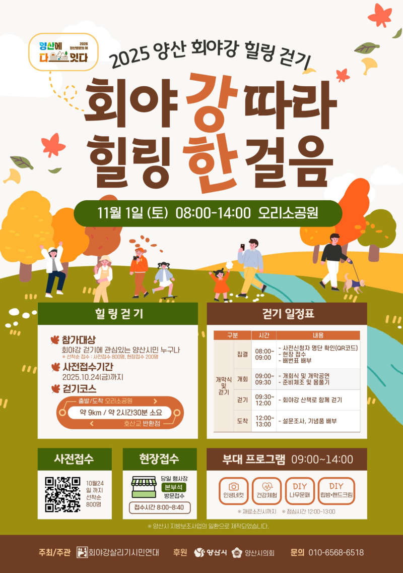 양산시 웅상출장소는 다음달 1일 오리소공원에서 ‘2025 양산 회야강 힐링걷기 행사’를 개최한다.