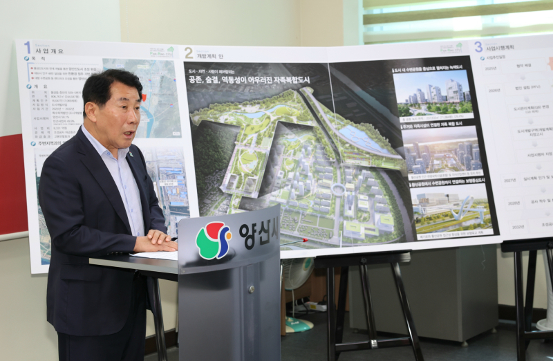 양산시 나동연 시장은 이날 기자회견을 열고 증산지구 도시개발사업 추진 상황을 발표했다. 시는 증산지구를 개발 압력이 큰 지구로 보고 총 사업비 8331억원을 투입해 80만㎡ 부지에 공동주택 및 단독주택 7069세대와 초등학교, 유치원, 도서관, 복합커뮤니티 시설 등을 조성할 예정이다. 계획 인구는 1만6천명다.