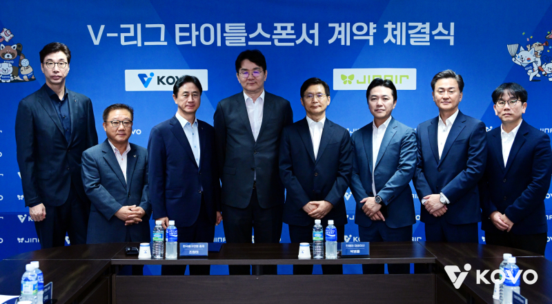 KOVO는 30일 마포구에 위치한 한국배구연맹 대회의실에서 진에어와 프로배구 V-리그 타이틀 스폰서 계약을 체결했다고 밝혔다. 기간은 1+1으로 2025~2026시즌부터 2026~2027시즌까지 최대 2시즌 동안 동행할 예정이다.