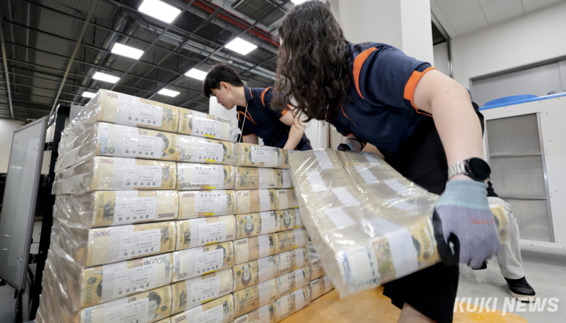 30일 서울 중구 한국은행 화폐수납장에서 관계자들이 추석 화폐 공급을 하고 있다.
