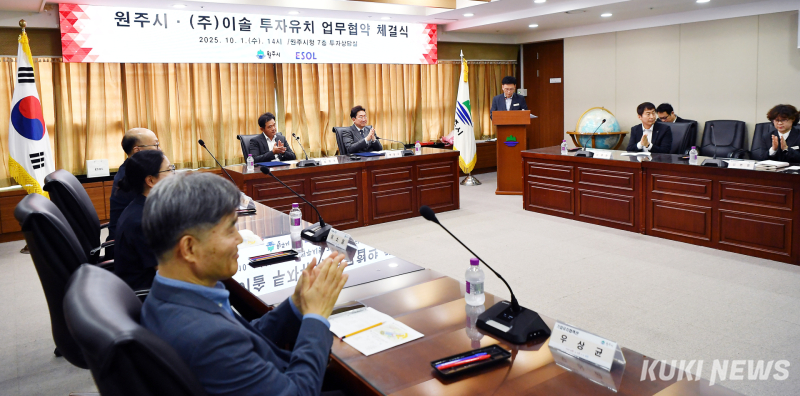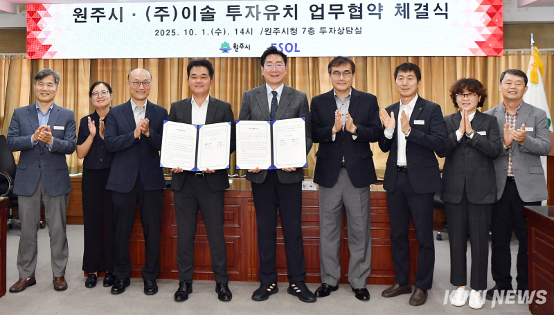 원주시는 1일 오후 시청 투자상담실에서 ㈜이솔(대표 김병국)과 투자유치 협약(MOU)을 체결했다.