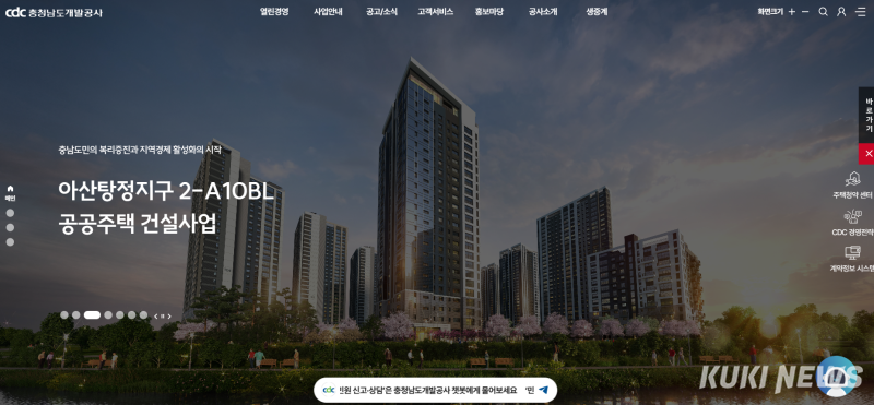충남개발공사가 1일부터 홈페이지(www.cndc.kr)에 인공지능 기반의 대화형 질의응답이 가능한 ‘AI 챗봇’ 서비스를 본격 운영한다.