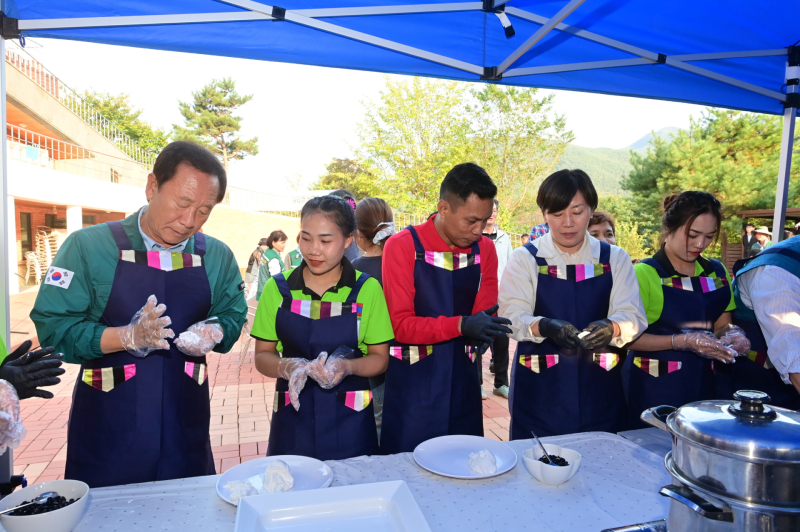 행사는 봉화농협 공공형 계절근로 사업현장 간담회로 시작해 송편 빚기와 시식, 캄보디아·라오스 음식 나누기, 한국 노래 합창 등 다양한 문화 교류 프로그램으로 이어졌다.