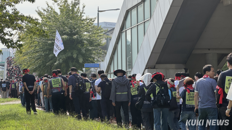 이날 노조 관계자는 “이번 총파업 대회에 참석한 사람은 1000명 조금 넘는다”고 밝혔다. 한 참석자는 “우리가 원하는 것은 단순하다”며 “4조 2교대로 전환하는 것 그리고 자회사 직원 처우 개선”이라고 했다.