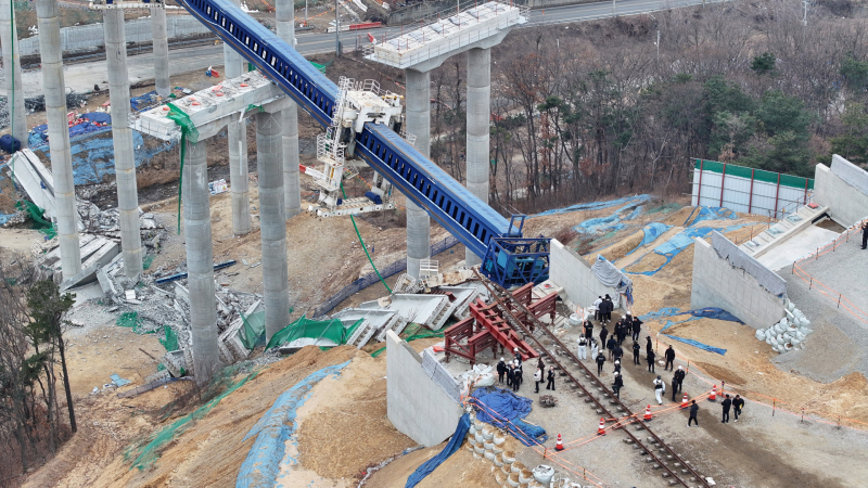 사고는 백런칭 작업 중 런처(거더를 인양·이동 및 거치하는 장비) 지지대 무게중심이 이동하면서 거더에 편심하중이 발생해 런처가 전도되며 발생했다. 백런칭은 거더 설치 완료 후 런처를 후방으로 이동시키는 작업으로 런처의 전·후방 지지대를 거더 위에서 번갈아 뒤로 옮기는 방식으로 진행된다.