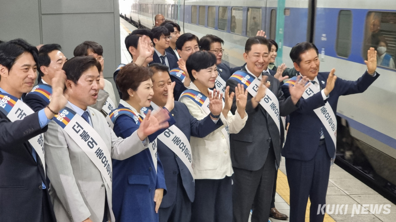민주당 지도부는 여수엑스포행 KTX 탑승장까지 이동해 귀성객들을 배웅했다. 정 대표는 인사 후 기자들과 만나 “지난 설 명절은 내란 때문에 불안하고 우울했을 텐데, 이번 추석은 내란을 극복하며 먹구름이 걷히고 있다”며 “종합주가지수는 물론 대한민국의 국격도 높아지고 있다”고 강조했다.