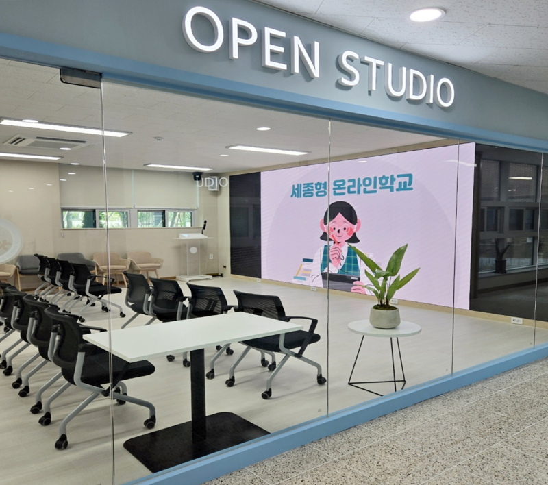 온세종학교는 실시간 쌍방향 원격수업을 기본으로, 이를 위한 온라인 스튜디오를 구축해 미래형 수업 혁신을 추진 중이다.