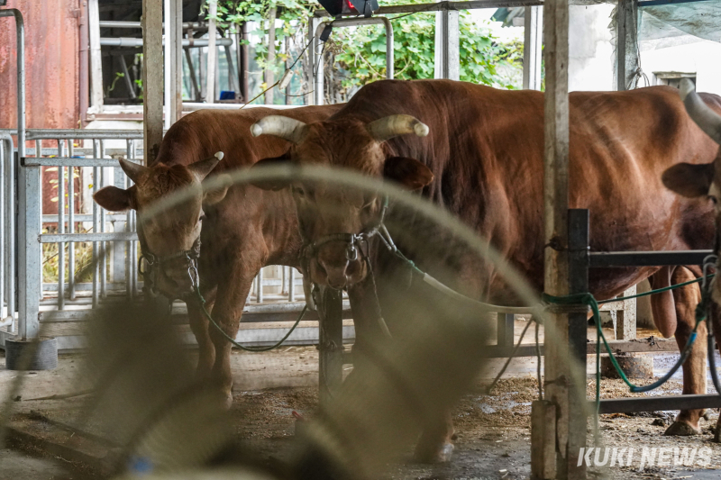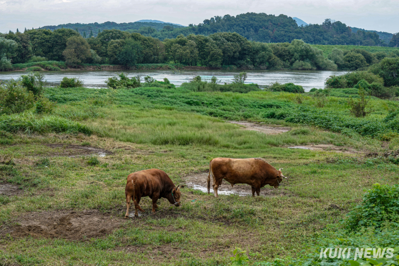 해가 기울면 소들이 먼저 일어난다. 물가 풀을 한 번 더 뜯고, 길 가장자리에 줄을 맞춰 트럭 쪽으로 걸어간다. 누군가 멈추면 함께 멈춘다. 사육장에 돌아오면 샤워가 먼저다. 흙이 남으면 밤새 뒤척인다. 털 사이 진흙을 벗겨내고, 발굽 틈 먼지를 물줄기로 턴다. 이어 톱밥을 깔고 고무 깔판을 손본다. 혹서기(7~8월)에는 강가에서 다시 잠자리를 편다.