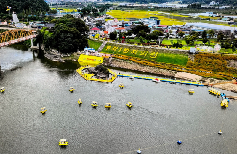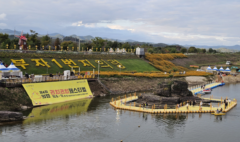 ‘부자 1번지 의령’ 문구를 형형색색의 꽃으로 장식해 축제장 곳곳에 풍성한 가을 분위기를 더했다. 관광객들은 솥바위 부교를 건너며 소원을 적은 종이를 매달아 ‘부자 기운’을 기원하는 등 기억에 남을 시간을 보내고 있다.