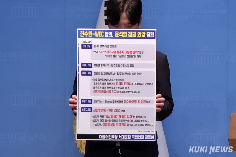 김동아 더불어민주당 의원이 한국수력원자력(한수원)·한국전력공사(한전)와 미국 원자력 기업 ‘웨스팅하우스’(WEC)의 협력 합의에 대해 국회 차원의 진상조사를 촉구했다. 윤석열 정권이 총선 참패·김건희 논란 등 정치적 위기를 돌파하기 위해 체코 원전 수주를 조급하게 시행했으며, 이에 한수원·한전과 웨스팅하우스 간 불공정 ‘굴욕 합의’를 만들었다는 설명이다.