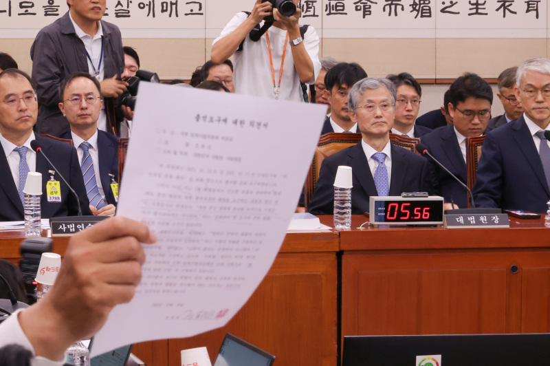 반면 김용민 민주당 의원은 “대법원의 이 대통령의 선거법 위반 사건 유죄 취지 파기환송을 통한 대선 개입 의혹이라는 특수한 상황이 있기 때문에 조 대법원장이 출석해야 한다”고 주장했다.