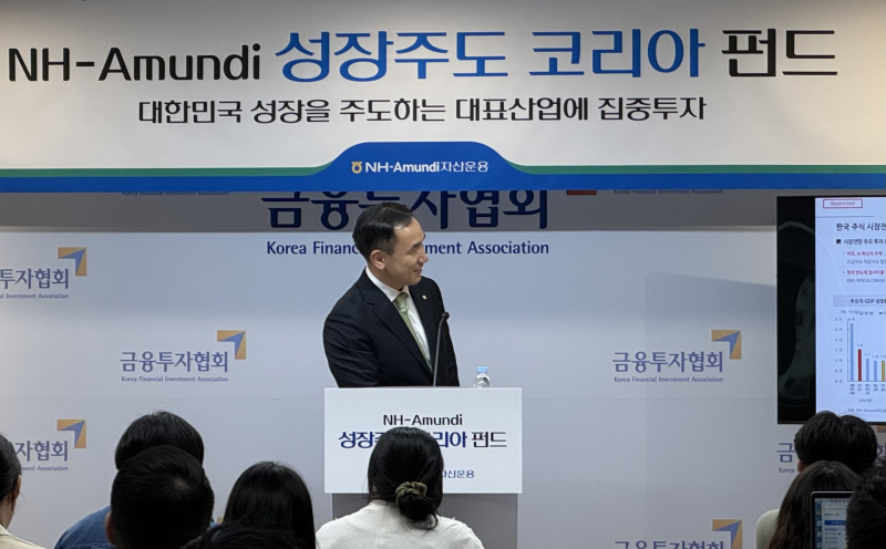 박진호 NH-아문디자산운용 본부장은 14일 서울 여의도 금융투자협회에서 열린 기자간담회에서 “새롭게 출시하는 ‘성장주도코리아 펀드’를 통해 국내 유명한 기업에 벤치마크 없이 골고루 투자해 최대의 성과를 낼 것”이라며 이같이 말했다.