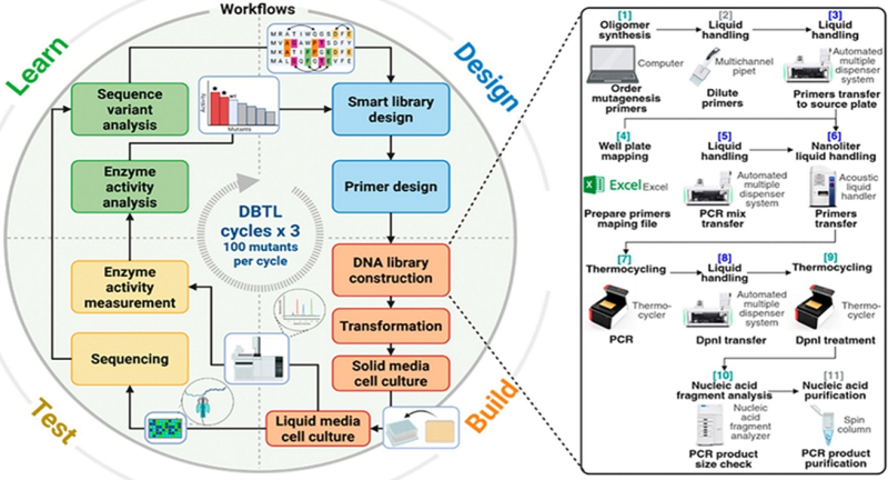 연구팀이 바이오파운드리 워크플로로 세 번의 서열 공진화 기반 설계-변이 라이브러리 제작-스크리닝 사이클을 수행해 300종의 변이체를 제작·분석한 결과 반응 효율이 최대 4.5배 오르고 내열 안정성도 향상됨을 확인했다.