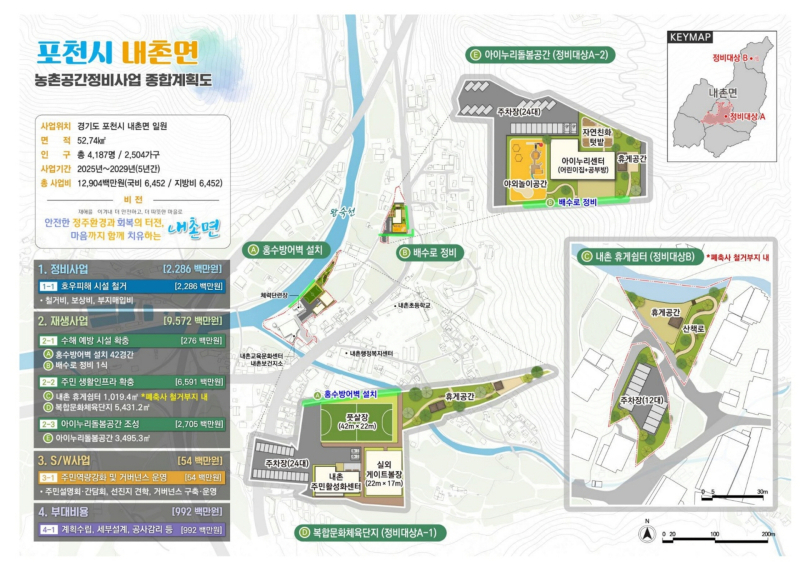 경기 포천시는 '농림축산식품부 농촌공간정비 추가공모사업'에 선정돼 오는 2029년까지 내촌면 일원에서 추진할 공간정비사업 예산 129억원을 확보했다고 14일 밝혔다.