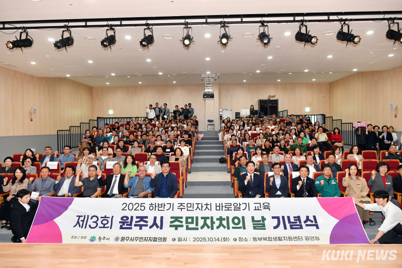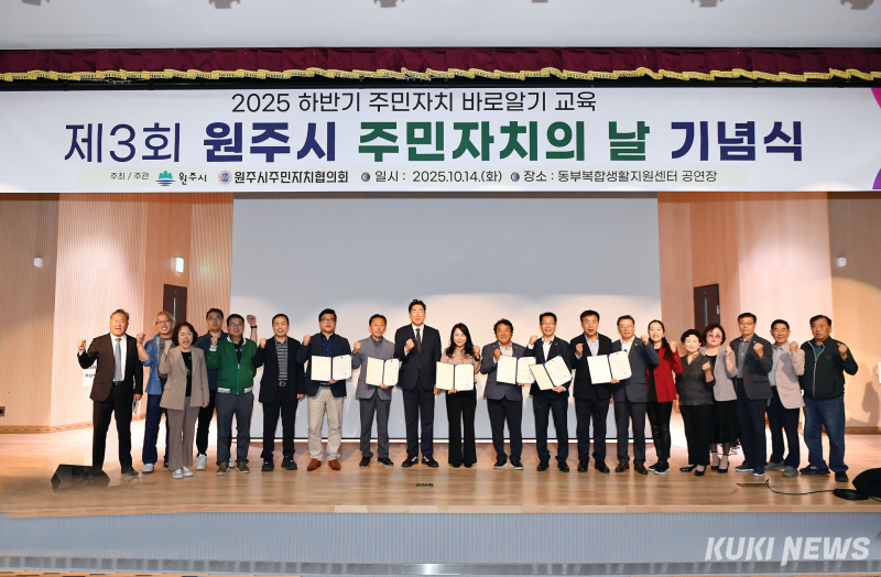 원주시와 원주시주민자치협의회(회장 최성우)는 지난 14일 동부복합생활지원센터 공연장에서 ‘제3회 원주시 주민자치의 날 기념식’을 개최했다.