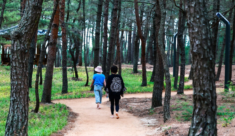 부드러운 천연 흙길로 조성된 월송정 맨발걷기길은 자연을 온전히 느끼기에 제격이다. 반딧불이가 길을 밝혀주는 풍경은 신비롭다.