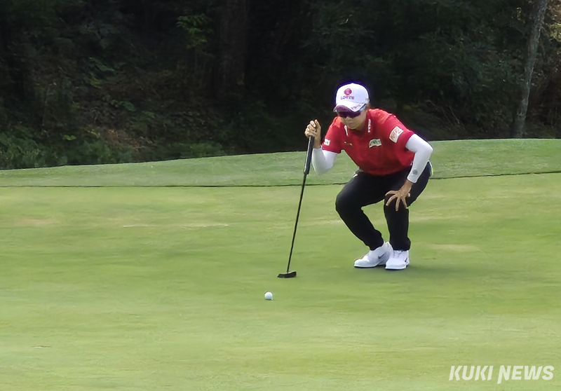 해남 파인비치 골프링크스에서 열린 ‘LPGA BMW 레이디스 챔피언십’ 첫날 경기에서 김효주 선수가 13번홀에서 퍼팅을 준비하고 있다. /신영삼 기자
