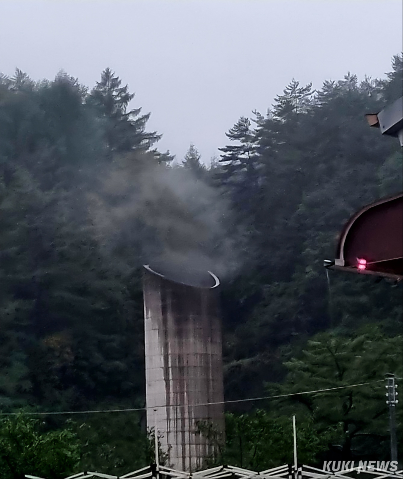 강원 태백시 황연동 솔안마을을 지나가는 솔안터널 솔안신호장 환기구에서 지난 13일 기차 매연이 뿜어져 나오고 있다. 이 환기구에선 지난 2021년에도 매연이 나와 지역주민들이 고통을 호소해 코레일과 태백시 관계자들이 모여 현장 점검을 한 바 있다.