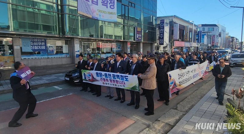 행사에 참여한 홍천군 재향군인회와 보훈단체 회원 120여 명도 약 1㎞ 정도를 행진하며 조속한 예타 통과와 사업 조기 착공에 목소리를 높였다.