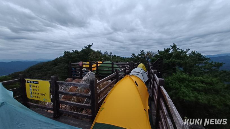 춘천 삼악산 전망대 통로가 불법 캠핑족들의 텐트로 점령당해 눈살을 찌푸리게 하고 있다.