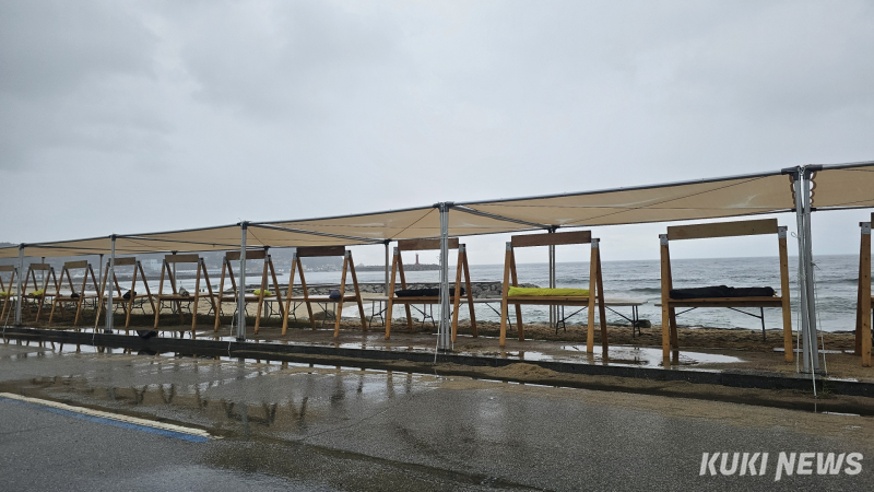 16일 행사(판매) 참여자들에 따르면 고성문화재단과 고성명태축제위원회가 비를 막아줄 수 없는 개방형타프 형태로 부스 다량을 바람이 많이 부는 해안가에 설치해 임의대로 행사(판매) 참여자들에게 배정했다.