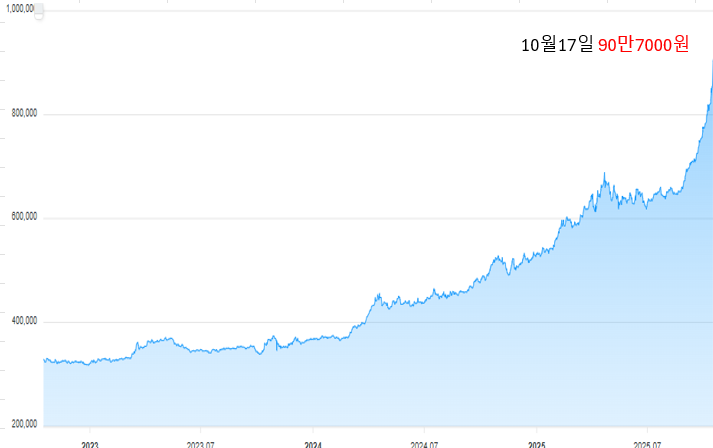 한국금거래소에 따르면 순금(24K) 가격은 17일 1돈(3.75g)당 90만7000원으로 전거래일 대비 4만4000원 올랐다. 한국금거래소 제공