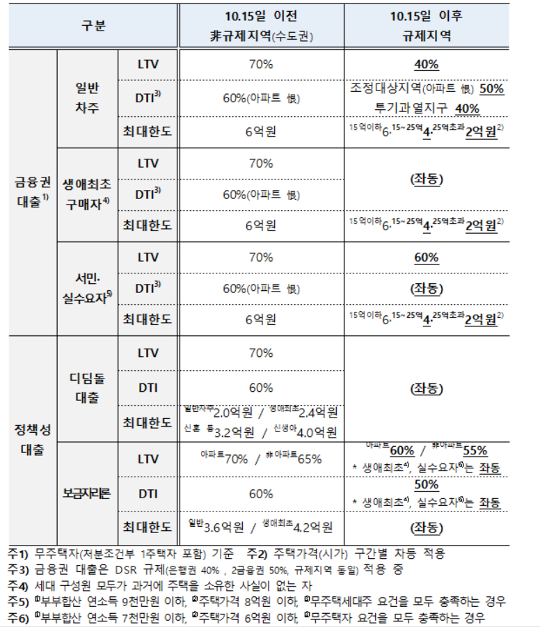 이번 대책시 규제지역으로 신규로 지정된 지역에서 서민·실수요자들의 주택 구입 시 대출규제가 어떻게 바뀌는가.