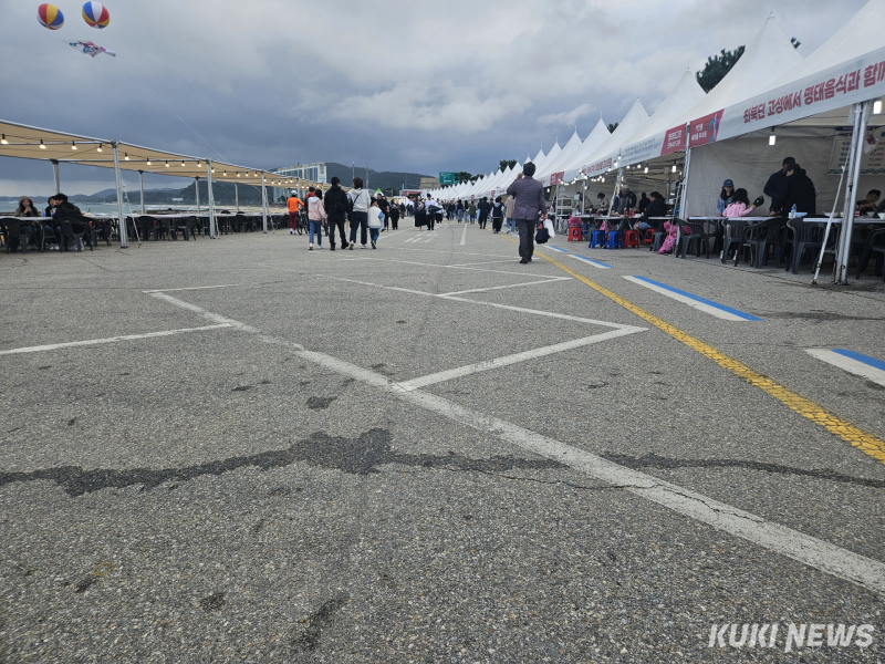 한 행사(판매) 참여자는 "음식을 먹을 장소가 없어 손님들이 좁은 부스에서 서서 먹었다"며 "비와 바람을 전혀 고려하지 않고 사방이 뚫린 그늘막 형태의 부스를 왜 설치했는지 이해할 수 없다"고 꼬집었다.