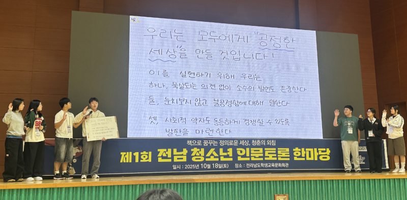 김영길 글로컬미래교육과장은 “이번 한마당은 학생들이 책을 통해 세상을 이해하고 서로의 생각을 나누며 성장하는 전남형 인문교육의 방향을 보여준 자리”라며 “앞으로도 학생들이 읽고, 생각하고, 토론하며 배우는 독서인문교육을 지속적으로 지원하겠다”고 밝혔다.