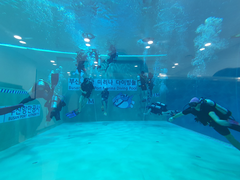 20일 부산 북항마리나 다이빙풀에서 참여자들이 다이빙을 하고 있다. BPA 제공.