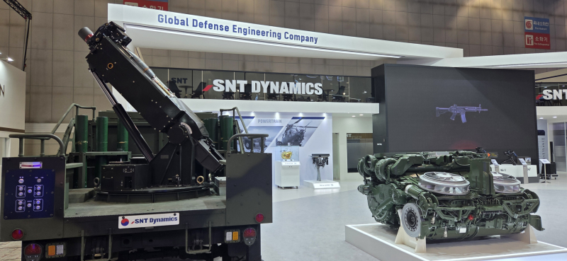SNT다이내믹스는 315㎡ 규모 전시장에서 1700마력급 중전차용 국산 파워팩, 1000마력급 궤도차량용 자동변속기, 전동 구동장치(EDU), 전동화 차축(e-Axle), LTV(소형전술차량) 탑재형 120mm 박격포체계, 3포열 20mm 터렛형 기관총체계(TGS), 12.7mm K6 중기관총 등 주요 제품을 선보였다.