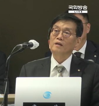이창용 한은 총재가 의원 질의에 답하고 있다. 국회방송 갈무리