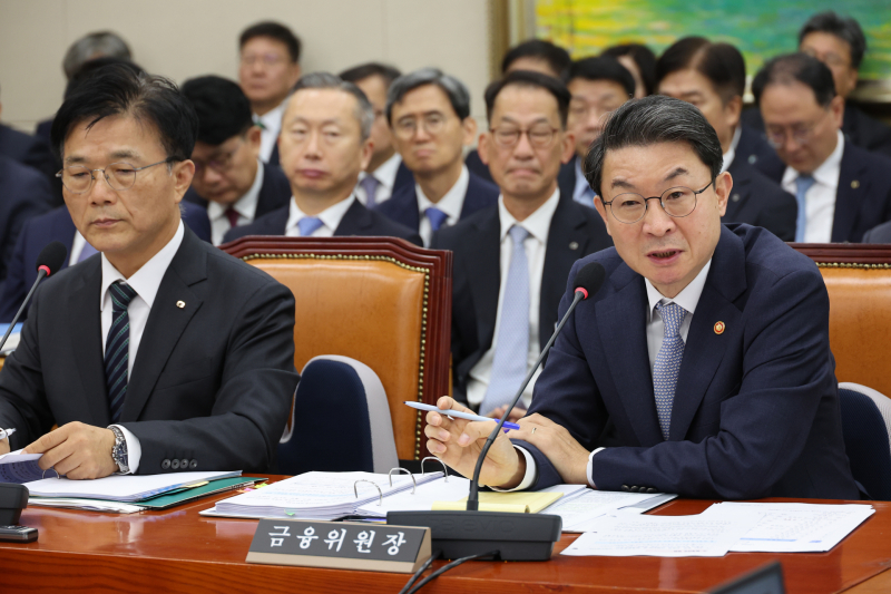 이억원 금융위원장이 20일 서울 여의도 국회 정무위원회에서 열린 금융위원회 등에 대한 국정감사에서 의원 질의에 답하고 있다. 연합뉴스