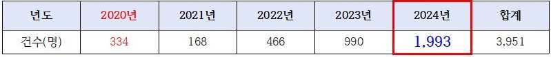 캄보디아발 APIS 대상 인원은 2020년 334명, 2023년 990명, 2024년 1993명으로 크게 증가하는 추세다.
