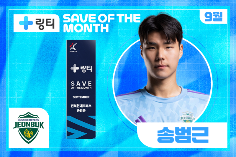 전북 현대 송범근이 2025시즌 9월 K리그 ‘의사가 만든 링티 이달의 세이브’를 수상했다.