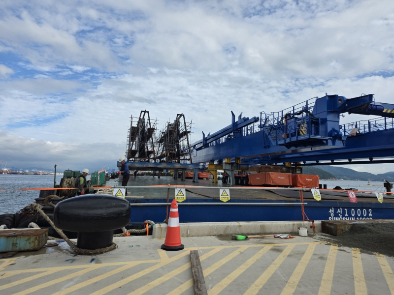 장비 제작사인 HD현대삼호는 전남 대불공장 제작장에서 크레인의 기초 구조물을 우선 제작 뒤 이를 현재 임시 유휴상태인 북항 자성대부두로 운송해 크레인 블록을 제작 중이다.