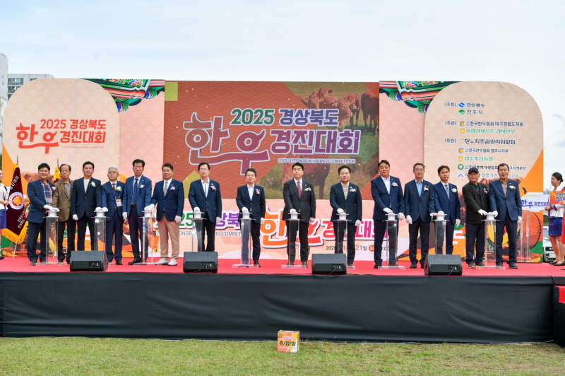 경북도와 영주시는 21일 영주시 문정 둔치에서 ‘2025년 경북한우경진대회’를 개최하고 지역 한우산업의 경쟁력 강화와 품종 개량 성과를 점검했다고 22일 밝혔다.