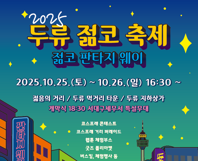 달서구는 오는 25일부터 26일까지 이틀간 두류젊코 상권 일대에서 ‘2025 두류젊코 축제’를 개최한다.