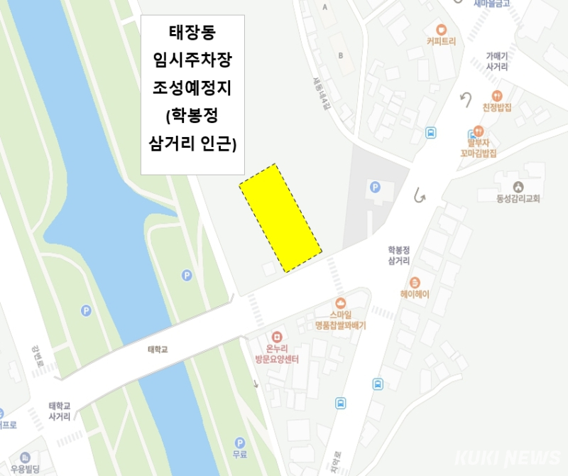 임시주차장은 오는 12월까지 태장동 760번지 일원(부지면적 2,915㎡) 117면, 가현동 69-11번지 인근(부지면적 1,871㎡) 54면 규모다.