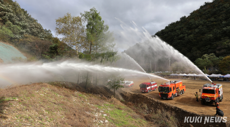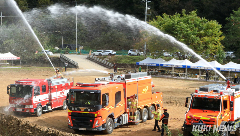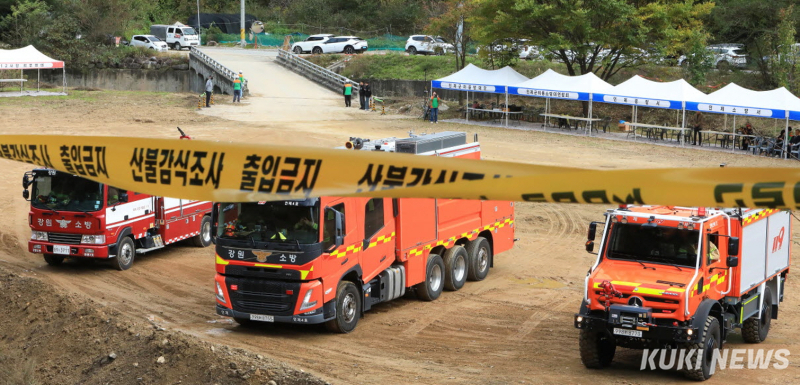 강원 인제군 2025 재난대응 안전한국훈련이 22일 인제읍 갯골 일원에서 실시됐다.(인제군 제공) 이날 훈련은 재난 발생 시 지방자치단체와 유관기관의 대응 능력을 평가하는 훈련으로, 대형 산불 화재 상황을 가정해 진행됐다.