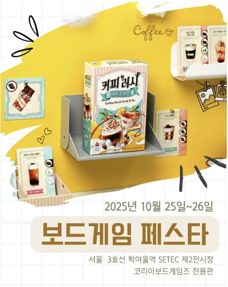 국내 최대 보드게임 축제인 ‘2025 보드게임 페스타’가 오는 25~26일 양일간 서울 학여울역 인근 SETEC 제2전시장에서 개최된다. 이번 행사에서는 코리아보드게임즈 전용관이 마련되어 다양한 신작 게임 출시와 체험, 토너먼트, 패밀리 카페존 등 다채로운 프로그램이 준비될 예정이다.