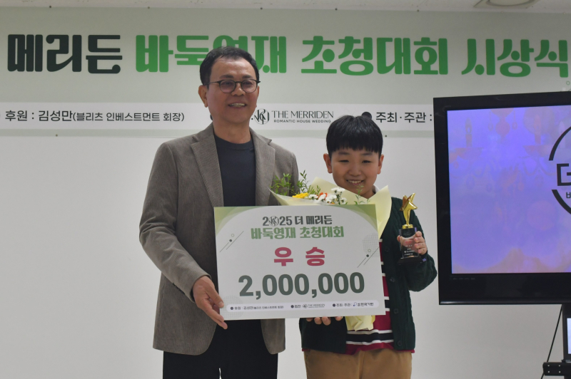 결승전이 끝난 직후 열린 시상식에는 개인 후원자 김성만 블리츠인베스트먼트 회장이 참석했다. 우승을 차지한 오세현에게는 상금 200만원과 트로피가, 준우승을 차지한 이서준에게는 상금 100만원과 트로피가 수여됐다. 아울러 오세현은 2025 더메리든 오픈 우승자와 특별 대국 기회를 얻었다. 2025 더메리든 오픈 대회 우승자는 22~23일 양일간 펼쳐지는 결승 3번기에서 가려진다. 결승에 오른 목진석 9단과 오유진 9단이 이날 오후 7시에 결승 1국을 펼칠 예정이다.