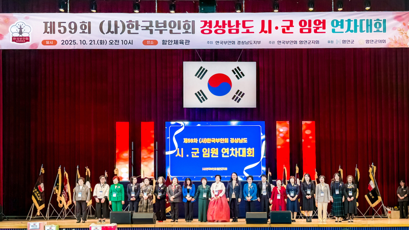 (사)한국부인회 경상남도지부는 지난 21일 한국부인회 함안군지회(지회장 김순이) 주관으로 함안실내체육관에서 ‘제59차 경남 시군 임원 연차대회’를 성황리에 개최했다.