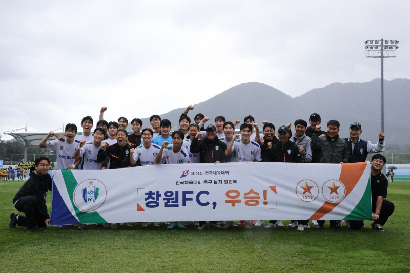 창원FC(이사장 장금용)가 제106회 전국체육대회 축구 남자 일반부에서 우승하며 2017년 이후 8년 만에 정상에 복귀했다.